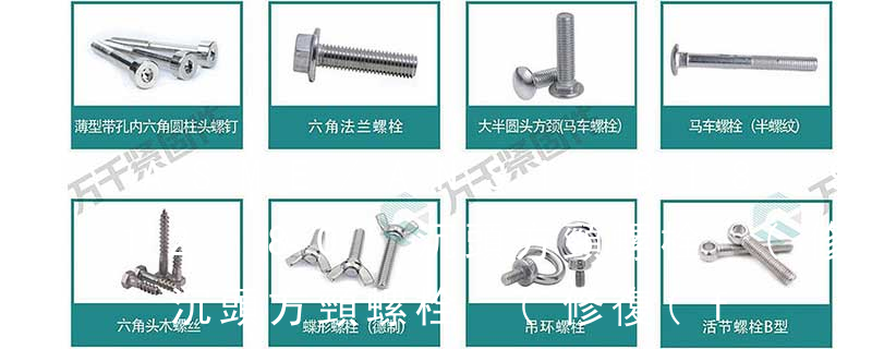 六角頭頭部帶孔螺栓 A 和 B級(jí) GB 32.1-88 六角頭頭部帶孔螺栓 細(xì)桿 B級(jí) GB 32.2-88 六角頭頭部帶孔螺栓 細(xì)牙 A 和 B 級(jí) GB 32.3-88 下方頭螺栓 B級(jí) GB 35-88 T 形槽用螺栓 GB 37-88 加強(qiáng)半圓頭方頸螺栓 GB eye bolt 吊環(huán)螺栓(也叫環(huán)首螺栓, 其實(shí)這個(gè)叫法很多,大概是不同地區(qū)的緣故)Piston bolt 活塞螺釘 Winding bolt 線圈螺釘 Hexagon head bolts 六角頭螺栓 Hexagon flange bolts 六角法蘭螺栓 Carriage bolt 馬車螺栓 Square